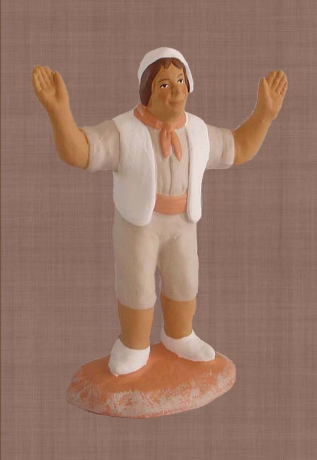 Santon, 7cm, en argile, cuit dans nos ateliers et peint à la main. Fabrication 100% provençale.